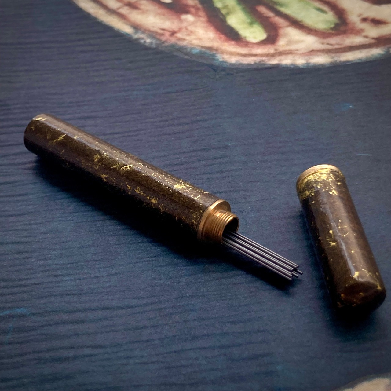 (特徴):金属系の芯ケースや木軸芯ケース、レザー系芯ケースはかなり出回っていますが、色を塗ったり染めたり、本漆を塗ったりの木軸芯ケースは、あまりみかけませんよね。