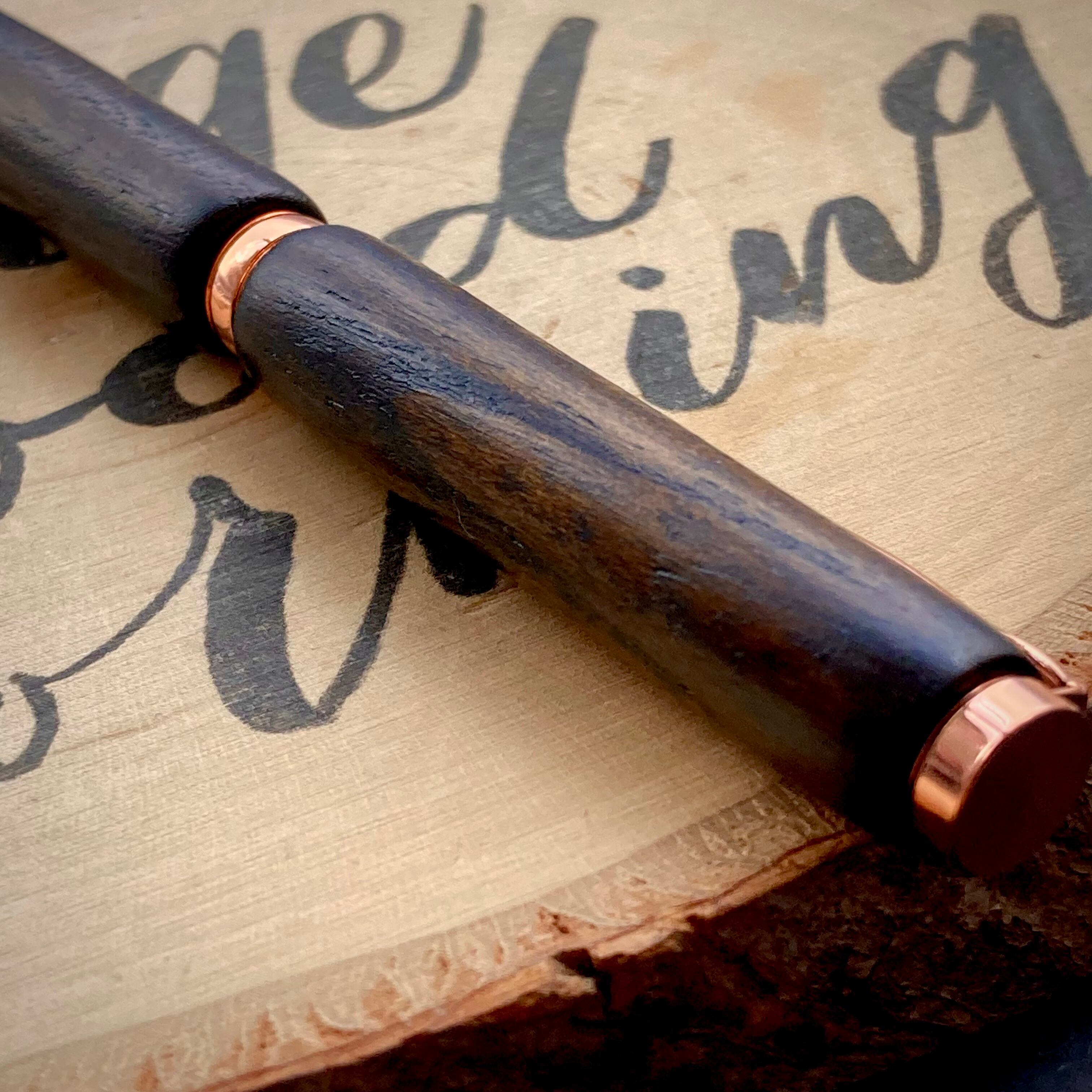 (段差):上部、下部ともに金具との段差はほとんどありません。口金と木軸の若干の高低差を意図的に残してあるのは、杉の弱点である柔らかさを考慮して、ペン軸両端の直径は通常の硬めの樹種より太く作りました。工業製品ではなくあくまでもハンドメイド作品なので、気になる方はご購入をお控えください。