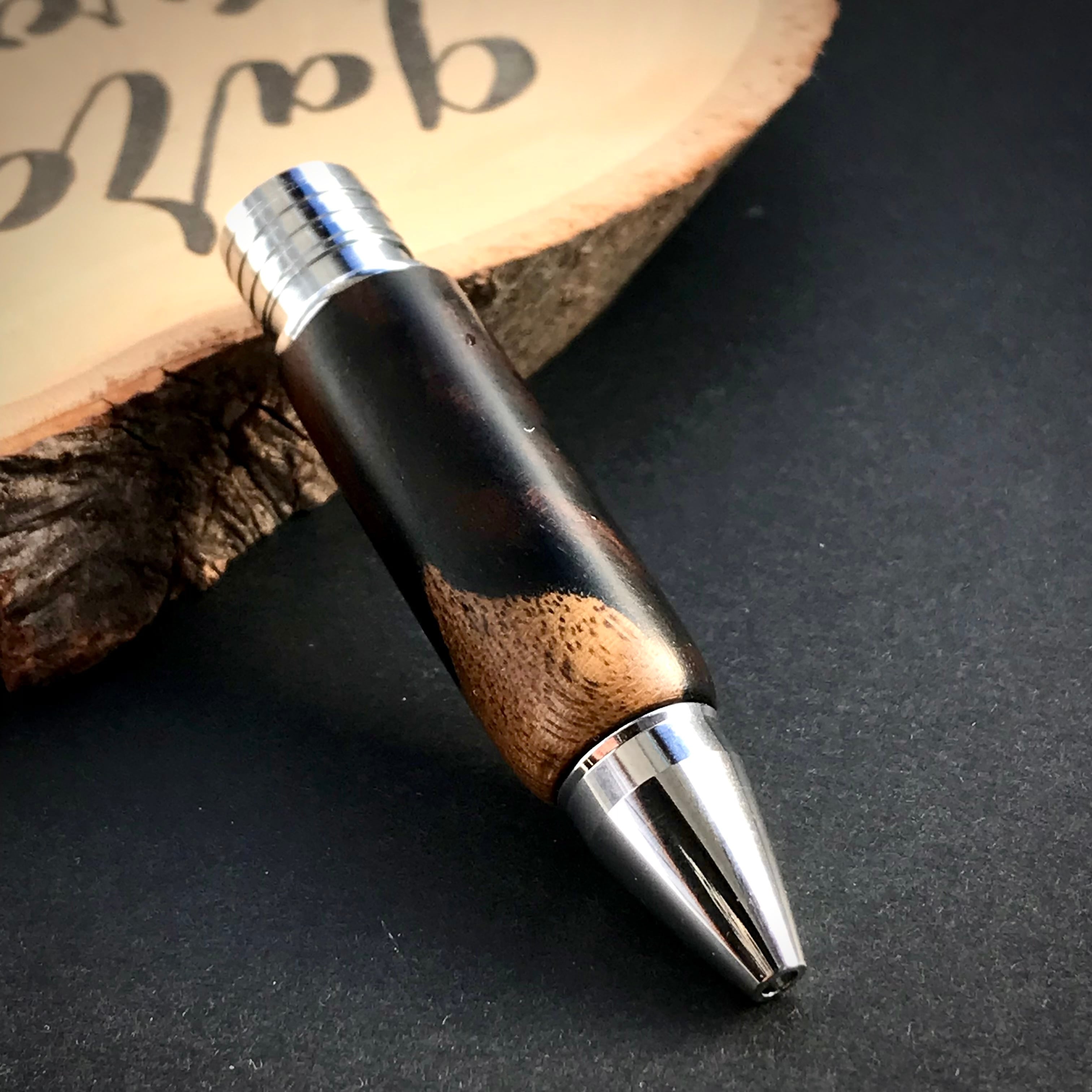 (作品):黒柿の木軸グリップ。