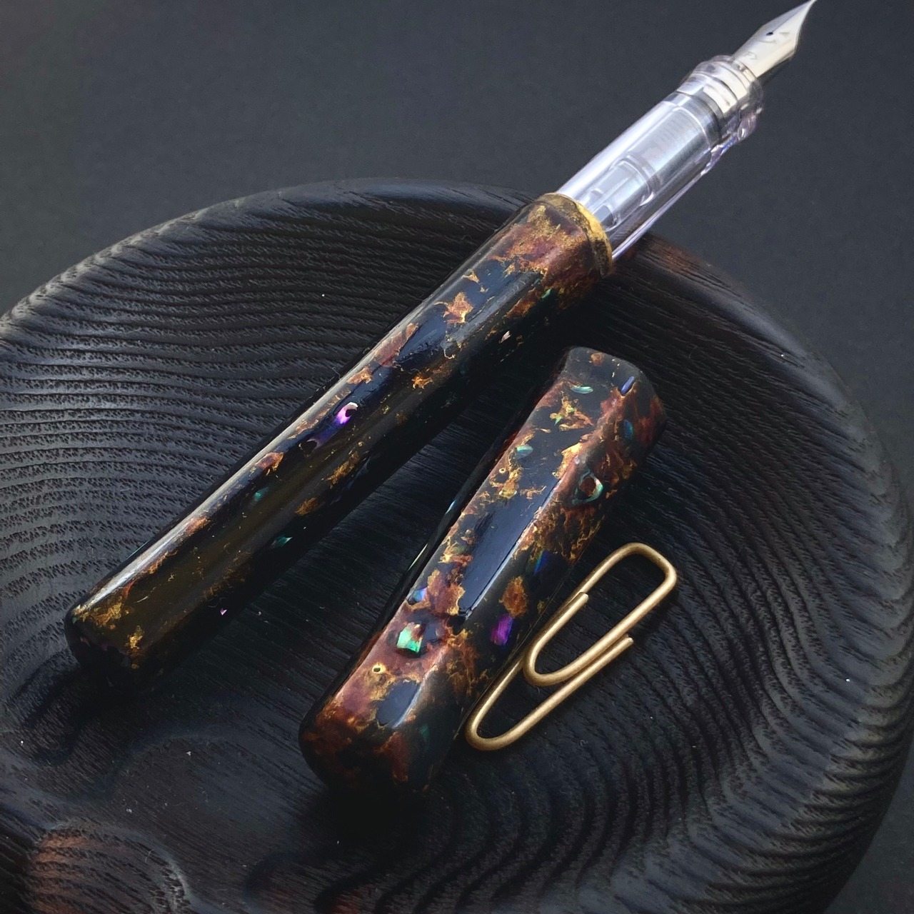 (特徴):ペントレーを念頭に作りましたが、使い方はそれぞれ。アクセサリーを置いてもよし。スナックを置いてもよし。ニブを置いてもよし。ただのオブジェとしてもよし。ご自由にどうぞ。