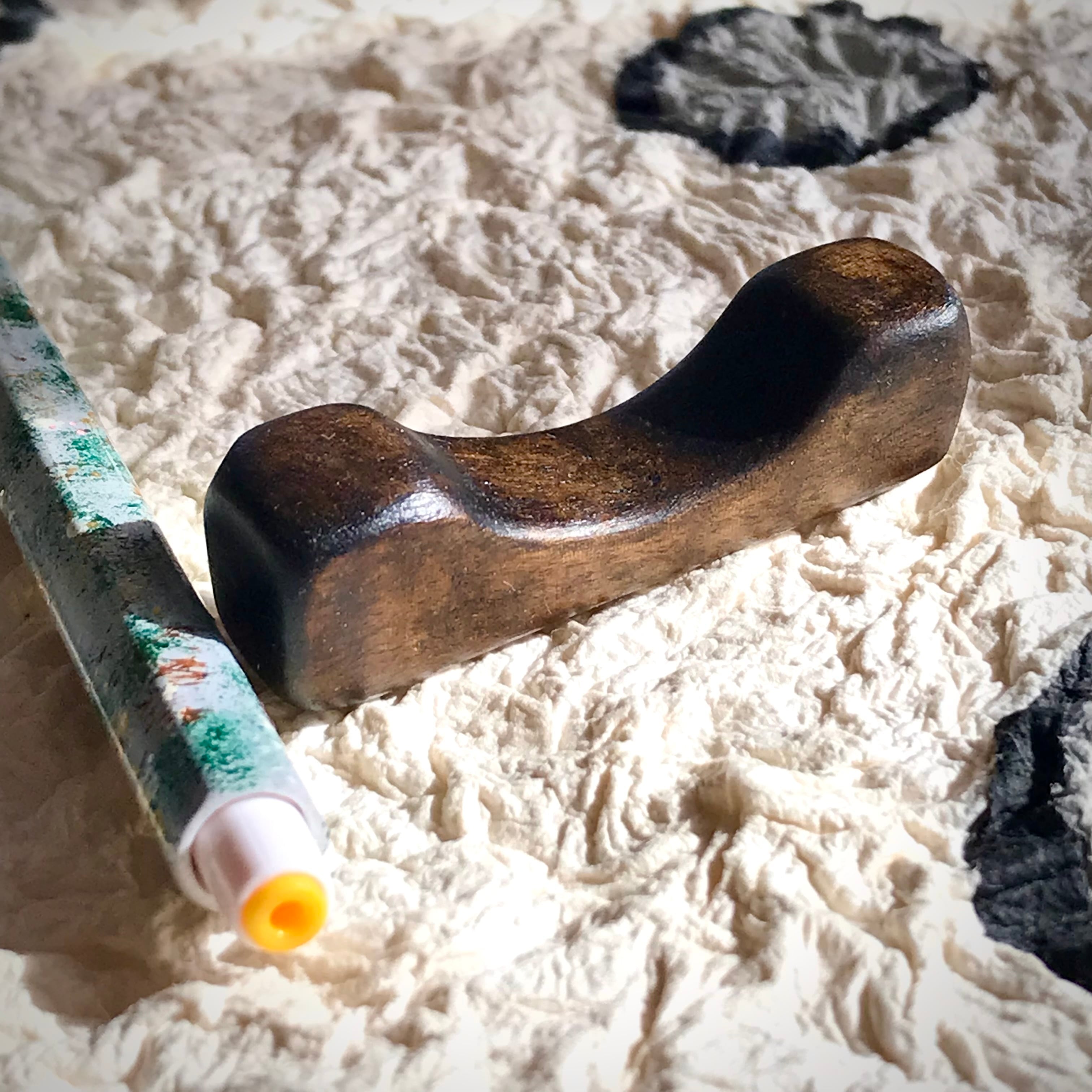 本黒漆塗り 栃 銘木ペンレスト 木製ペンレスト 手彫り