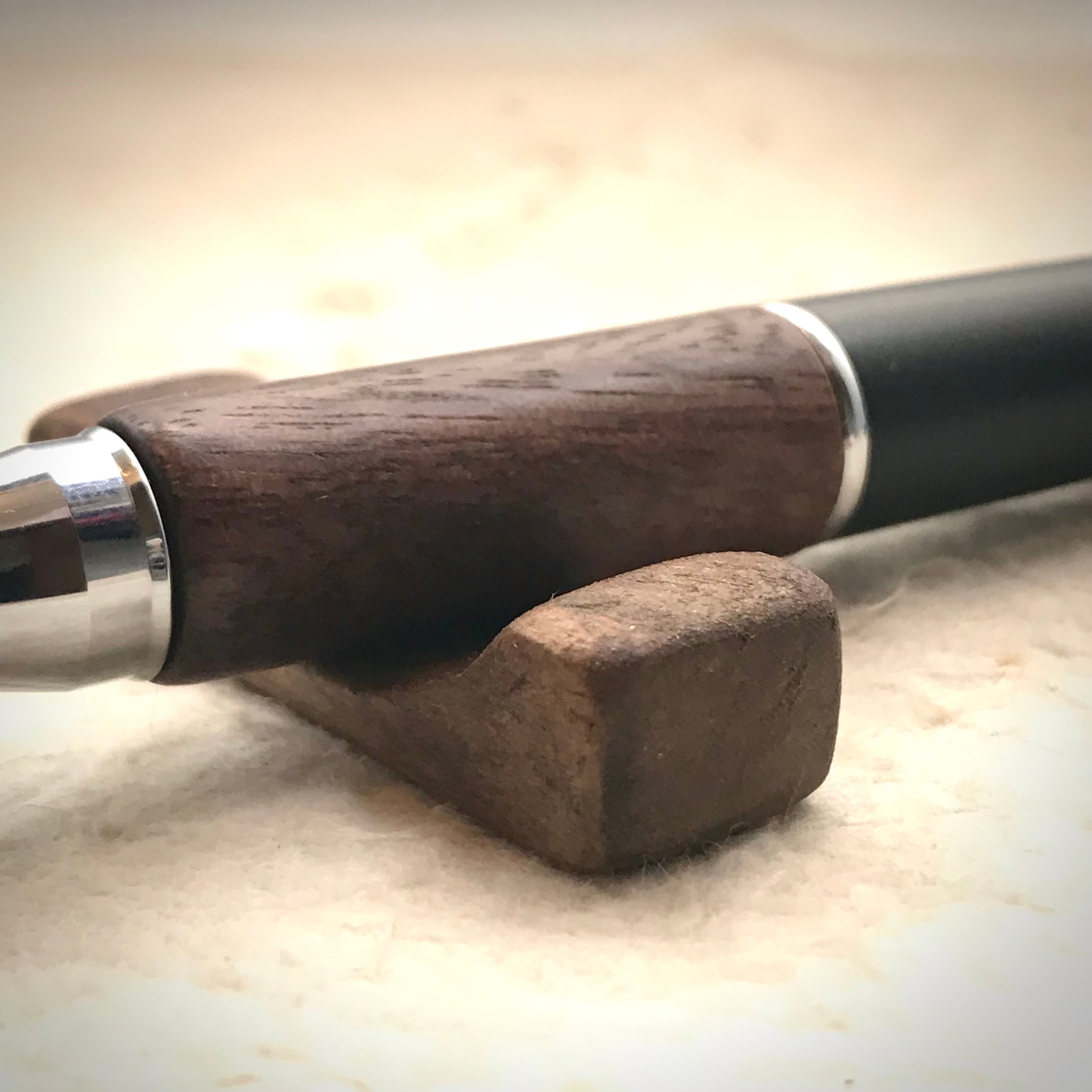 本黒漆塗り 栃 銘木ペンレスト 木製ペンレスト 手彫り