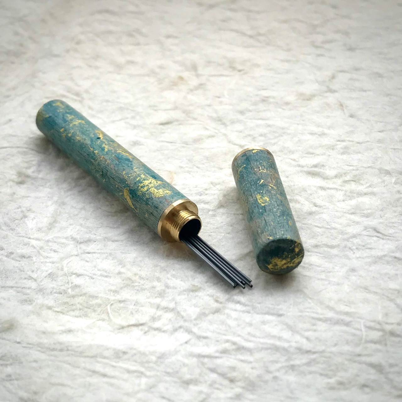 (特徴):金属系の芯ケースや木軸芯ケース、レザー系芯ケースはかなり出回っていますが、色を塗ったり染めたりの木軸芯ケースは、あまりみかけませんよね。