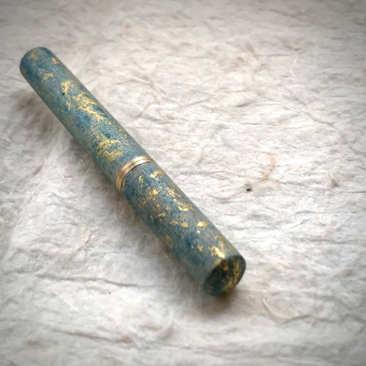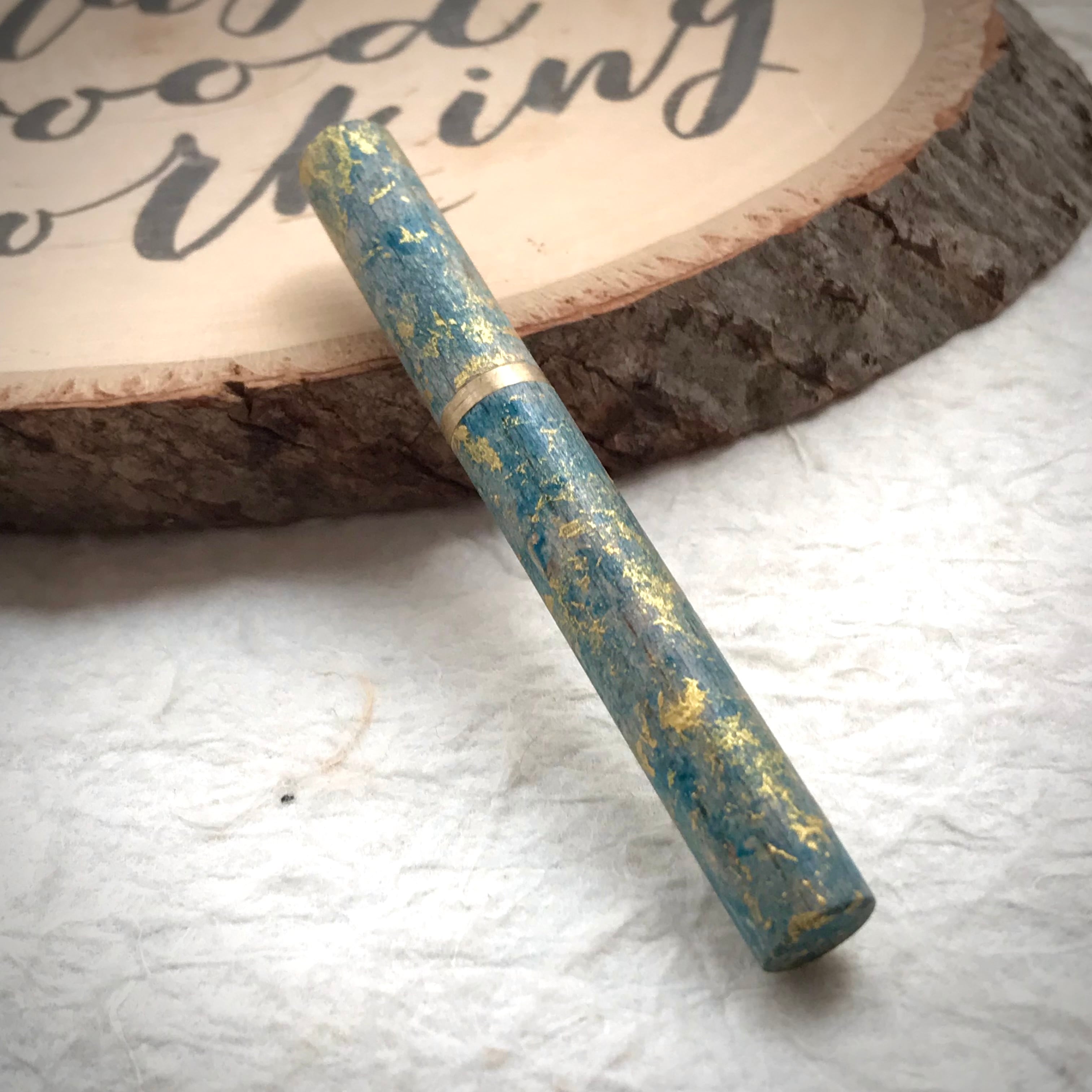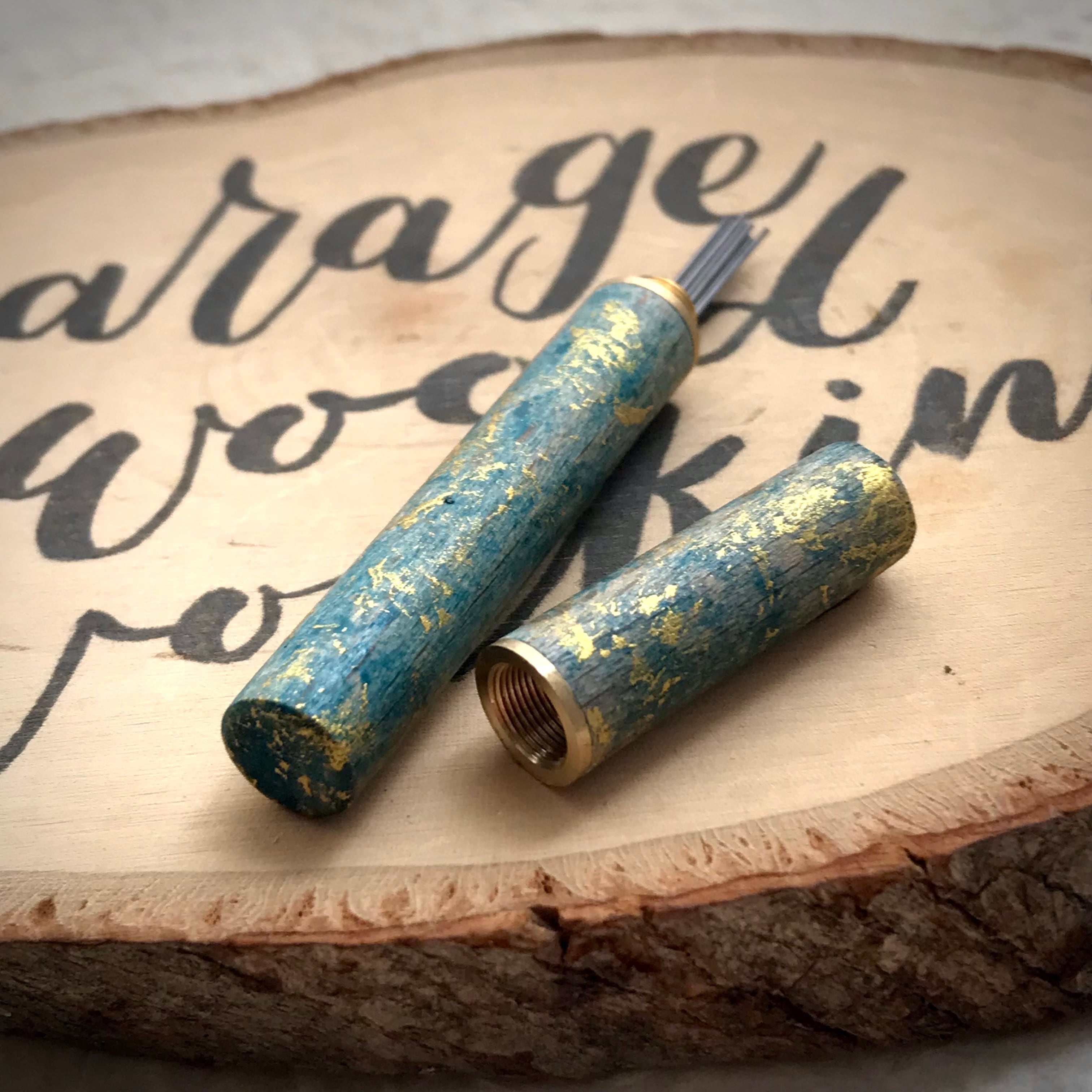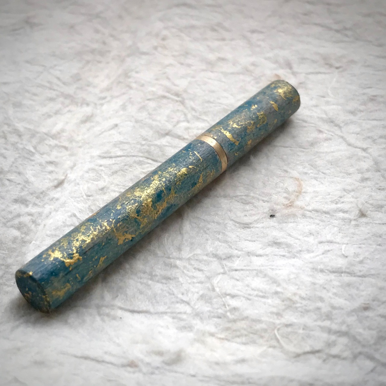 (作品):芯ケース。ゴールドペイント+ダークブルー/オイルフィニッシュ。ブナ。