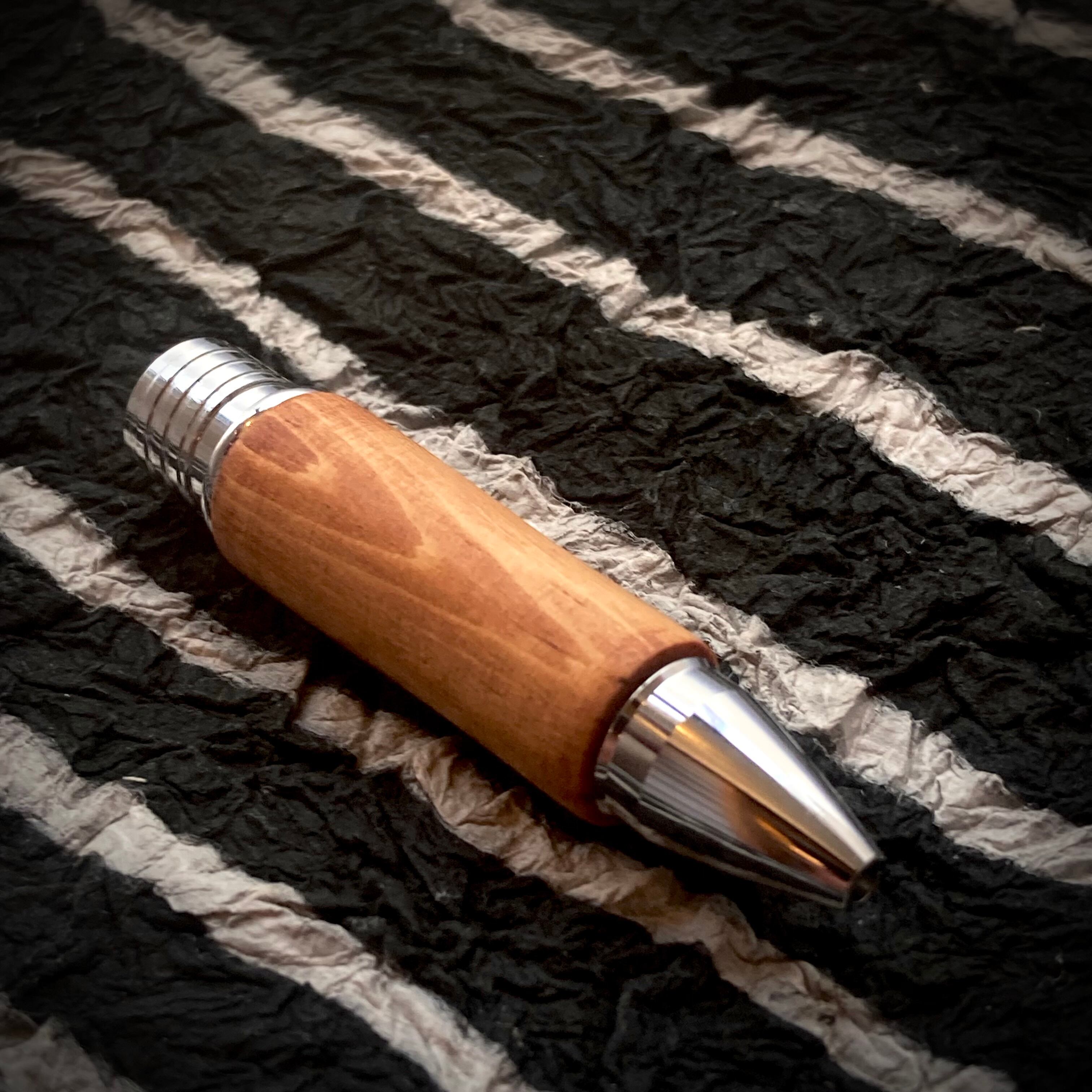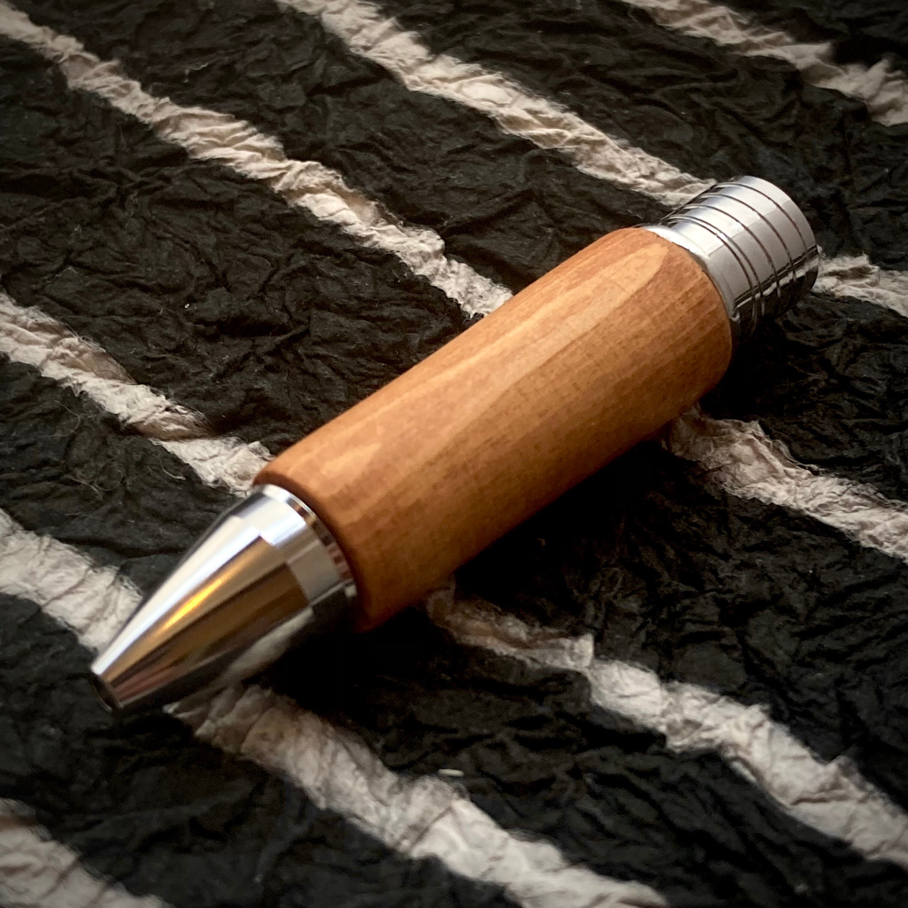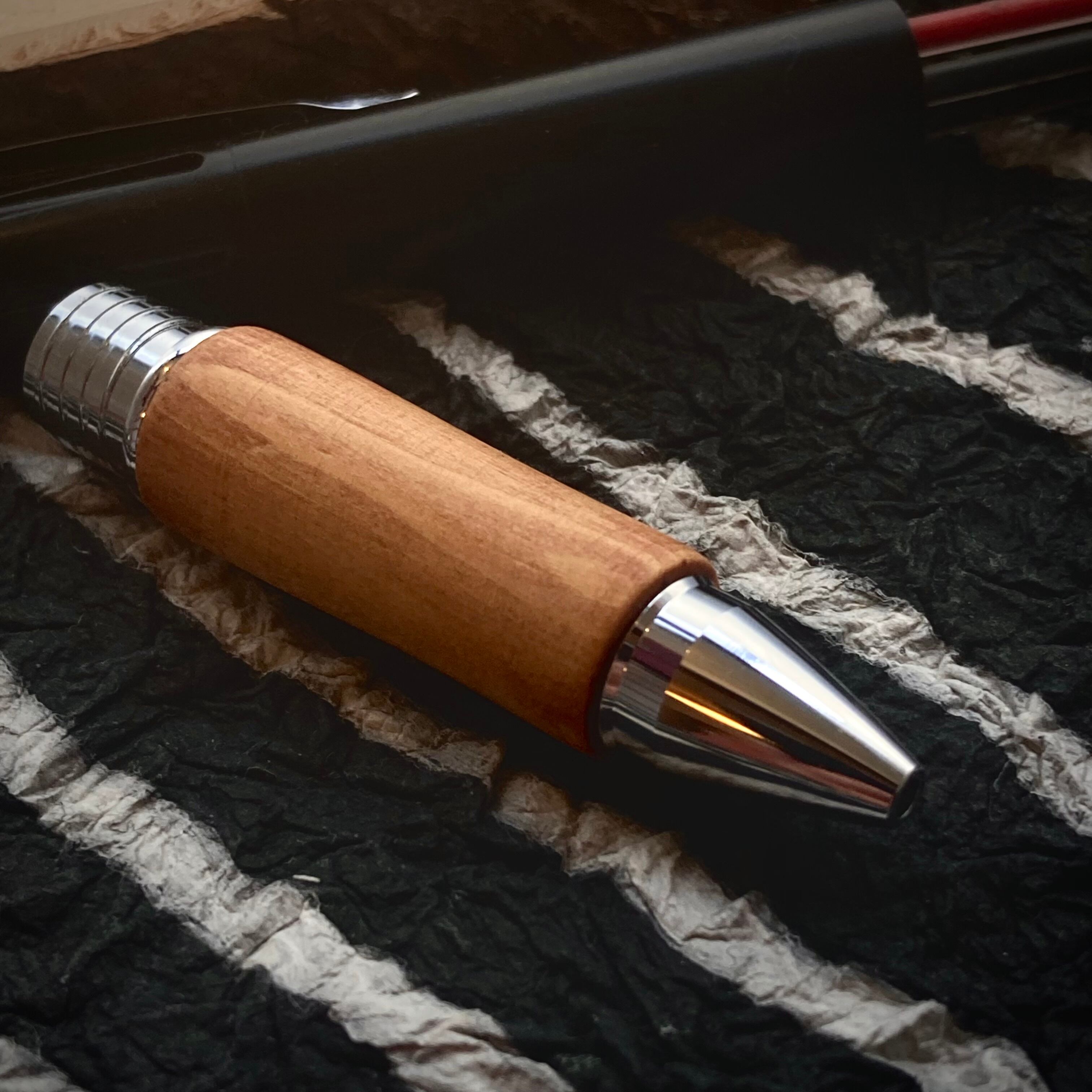 (特徴):檜特有のそこはかとない地味な色目とおとなしい木目が、よく出ています。「ひっそり」と落ち着いた佇まいが特徴です。控えめな木軸が好きな方におすすめします。