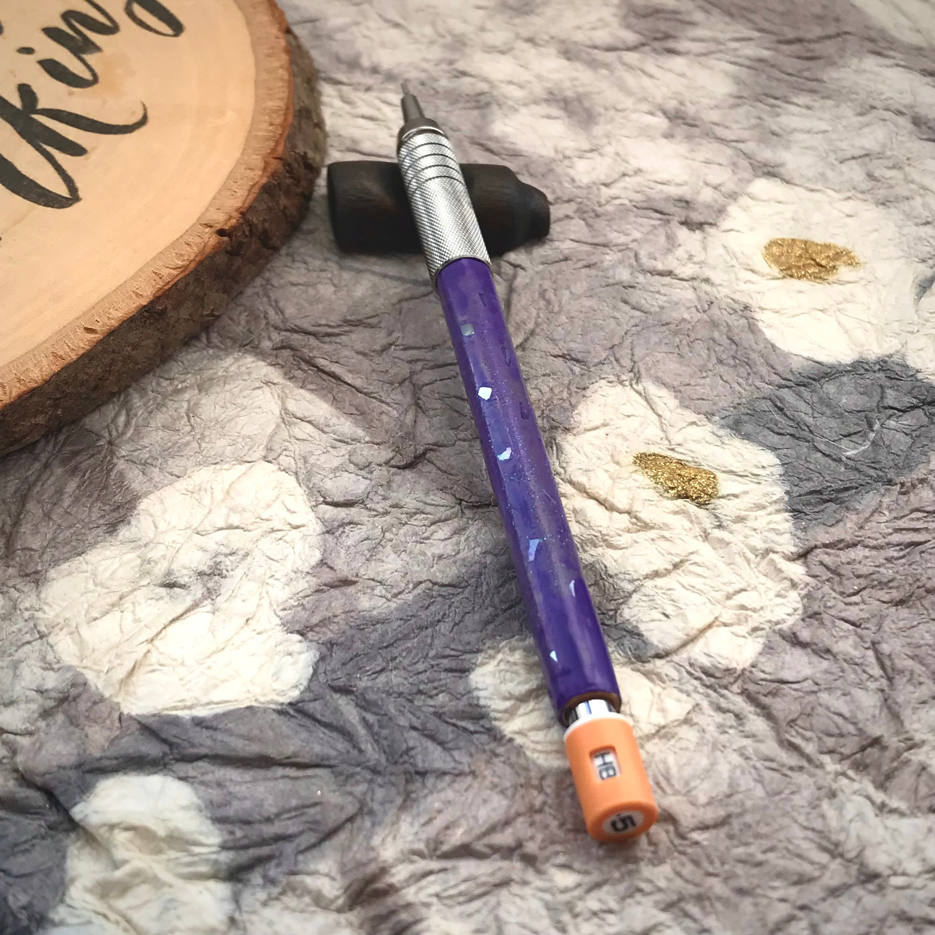 螺鈿 低重心シャーペン カスタム軸 ペイント軸 ラベンダー グリーングリッター シャーペン 0.5mm