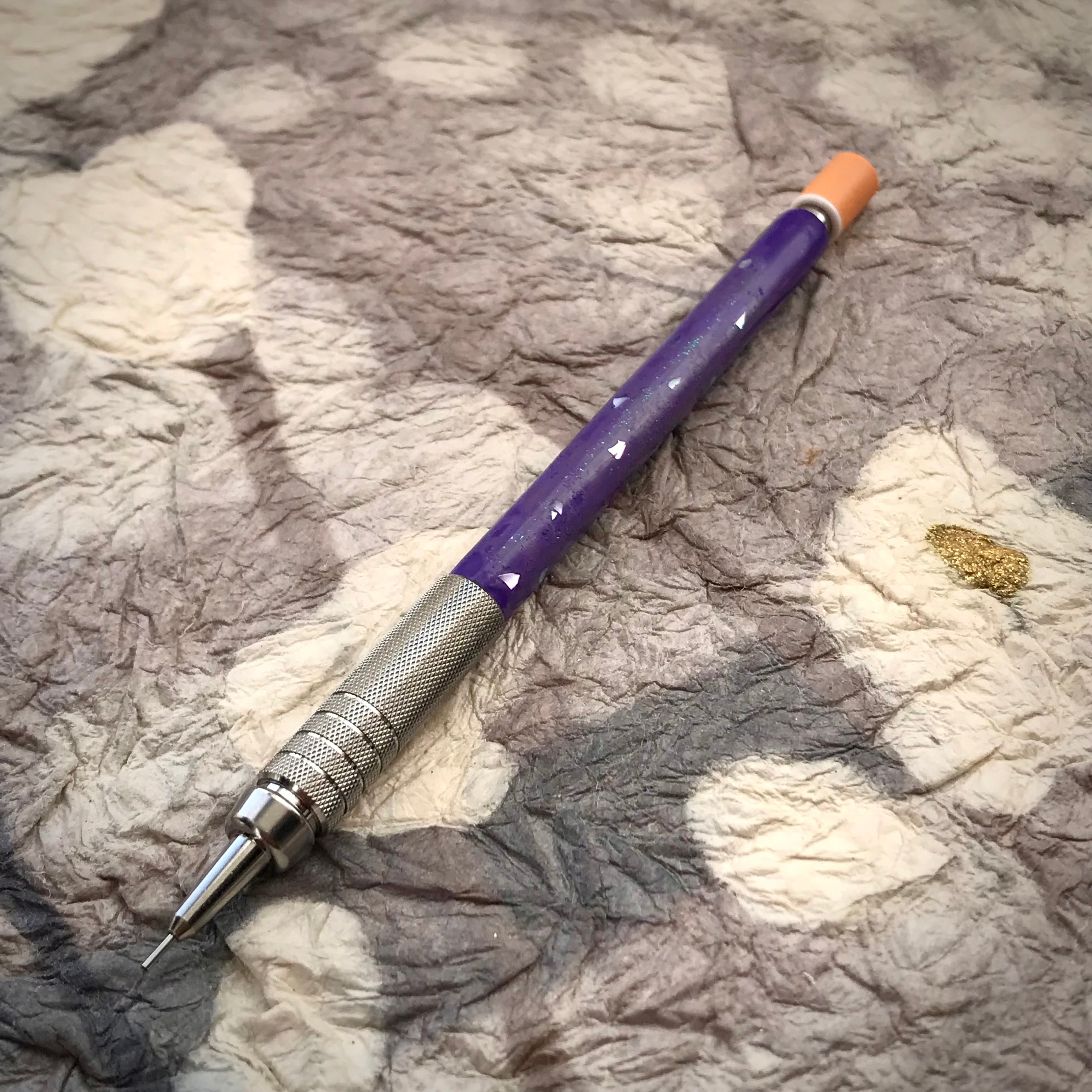 (作品) : 螺鈿。カスタムペイント軸。シャープペンシル。元々のプラスチック軸にカスタムペイントを施したもの。カスタム軸だけでなく、内部パーツ全てを含めた価格です。Mechanical Pencil. MP. Muji
