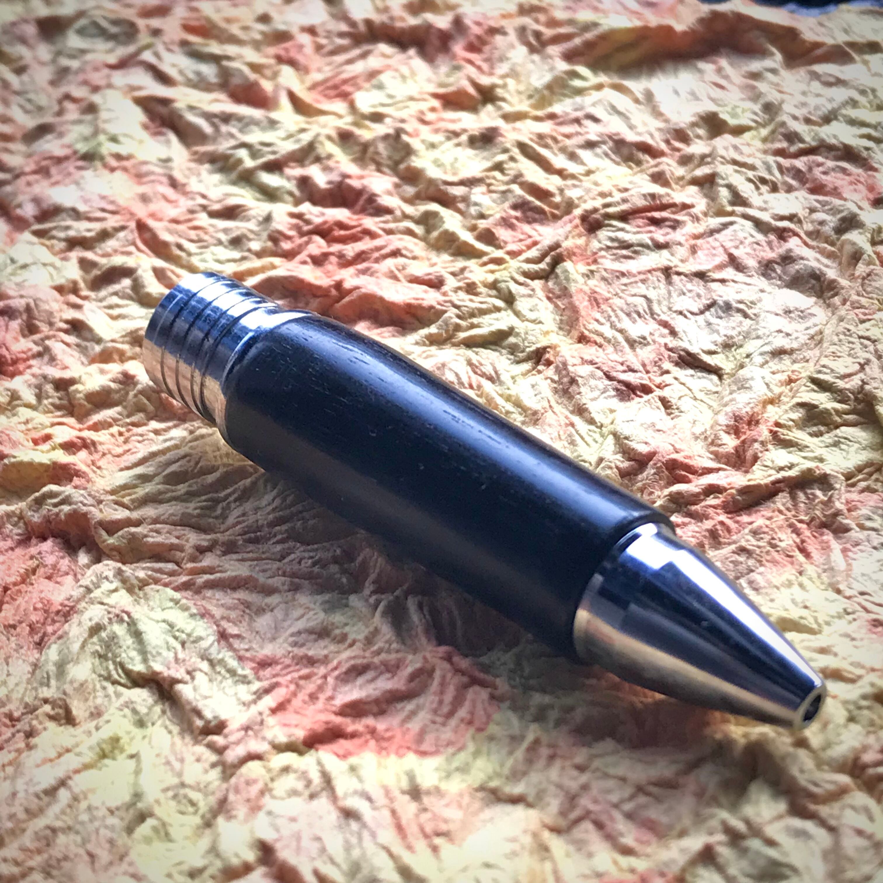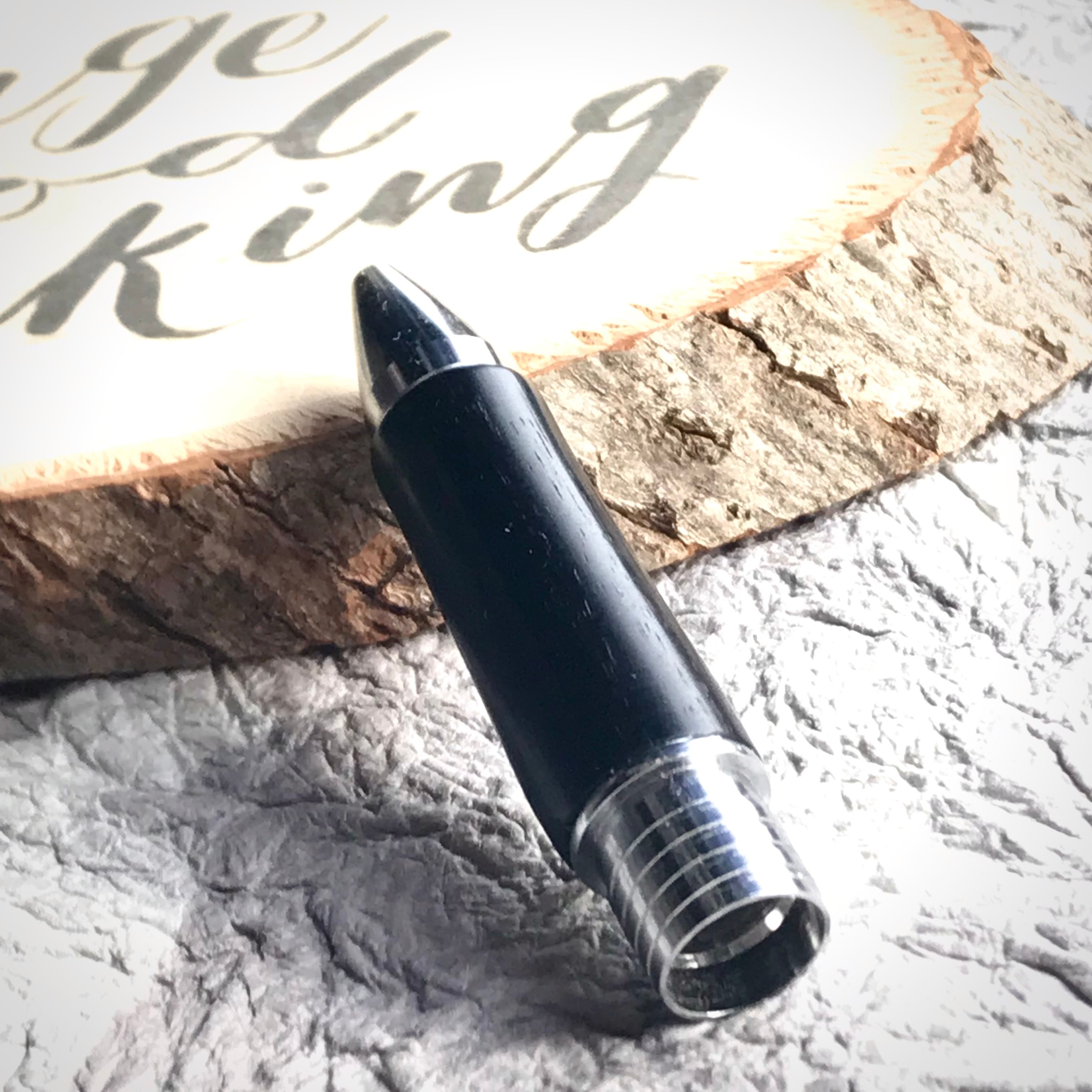 (フィニッシュ):亜麻仁油とシェラックで仕上げました。すごく薄く塗って、磨いて、乾燥させる。この工程を7-8回繰り返してあるので、フィニッシュだけでも、ただオイルを塗ってほおっておくのではなく、手間暇が1日以上かかっています。木軸グリップのフィニッシュとしては日本ではあまり見かけないフィニッシュ。