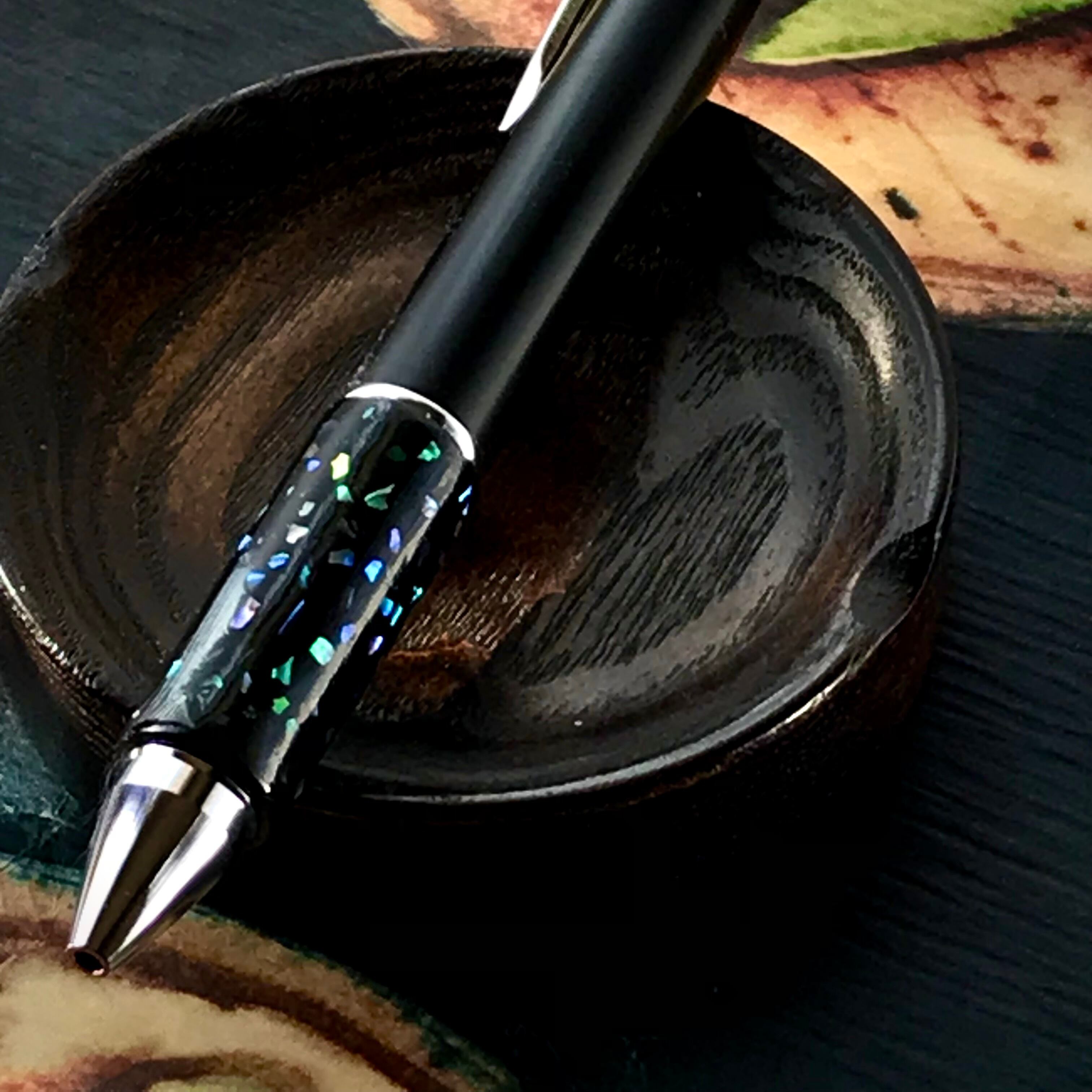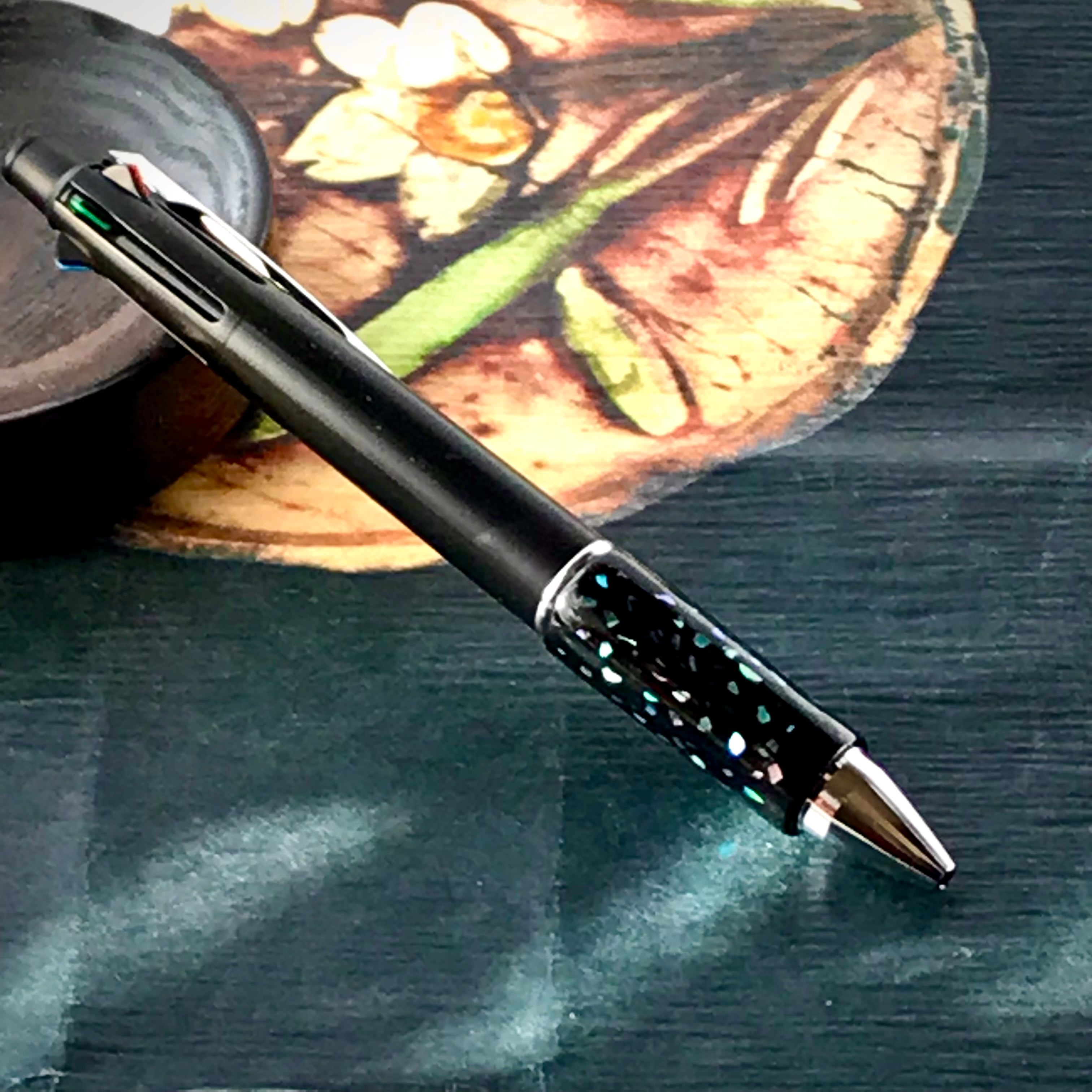 螺鈿 本黒漆塗り ヒッコリー 木軸グリップ ジェットストリーム4&1 カスタムグリップ