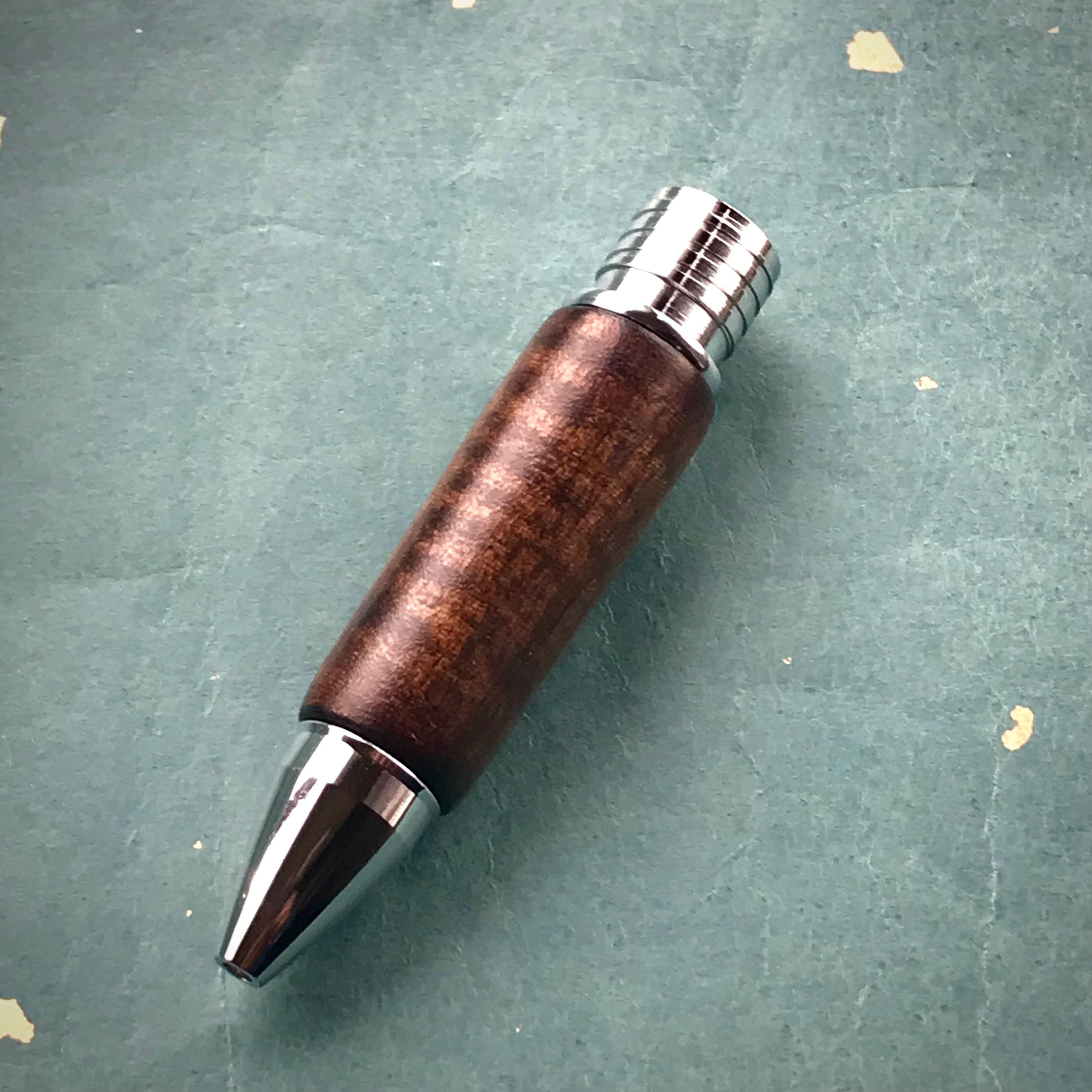 (特徴/フィニッシュ):細かくかなり複雑な木目が出ている。栃は上下の木目に加えて、左右に微細な木目がはいっているのが、そのユニークな特徴。また、握った感触もちょうどいい。グリップは真ん中が絞ったようなシェイプにしました。