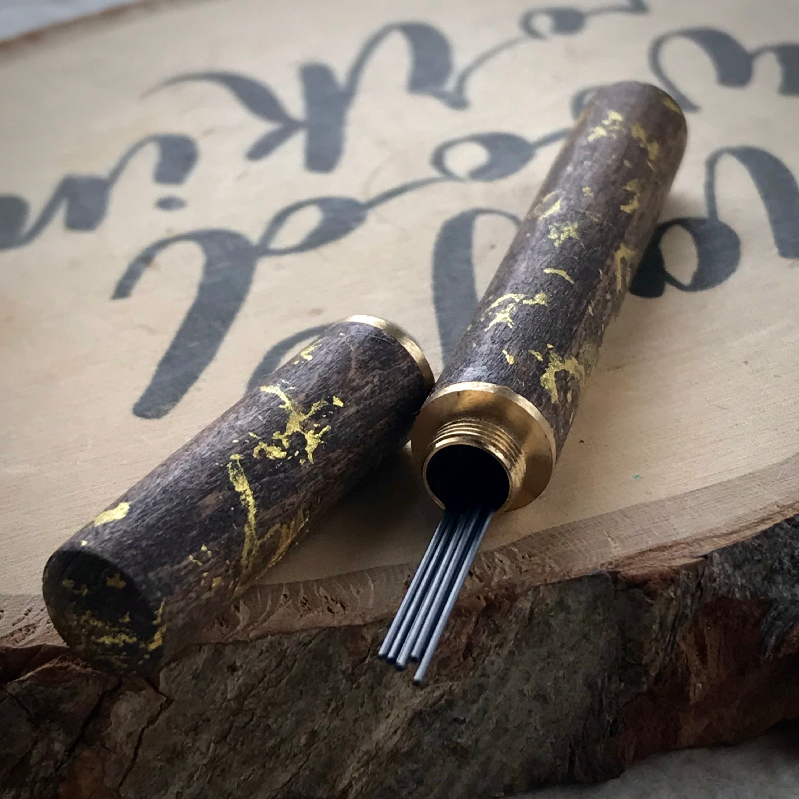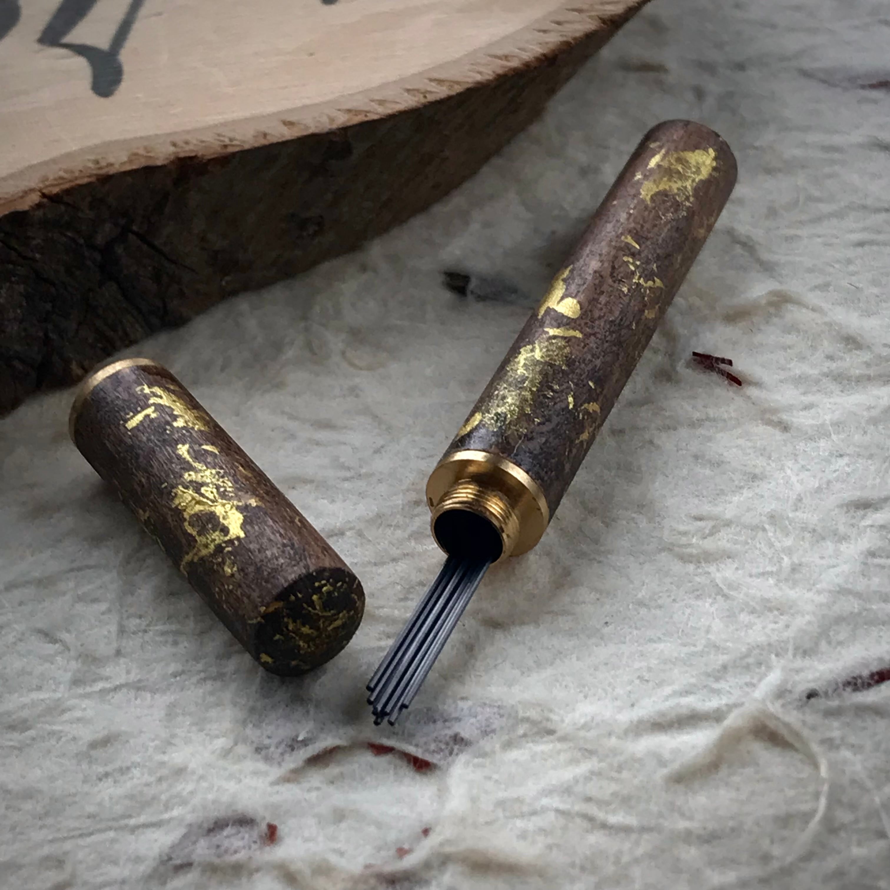 金属系の芯ケースや木軸芯ケース、レザー系芯ケースはかなり出回っていますが、色を塗ったり染めたりの木軸芯ケースは、あまりみかけませんよね。