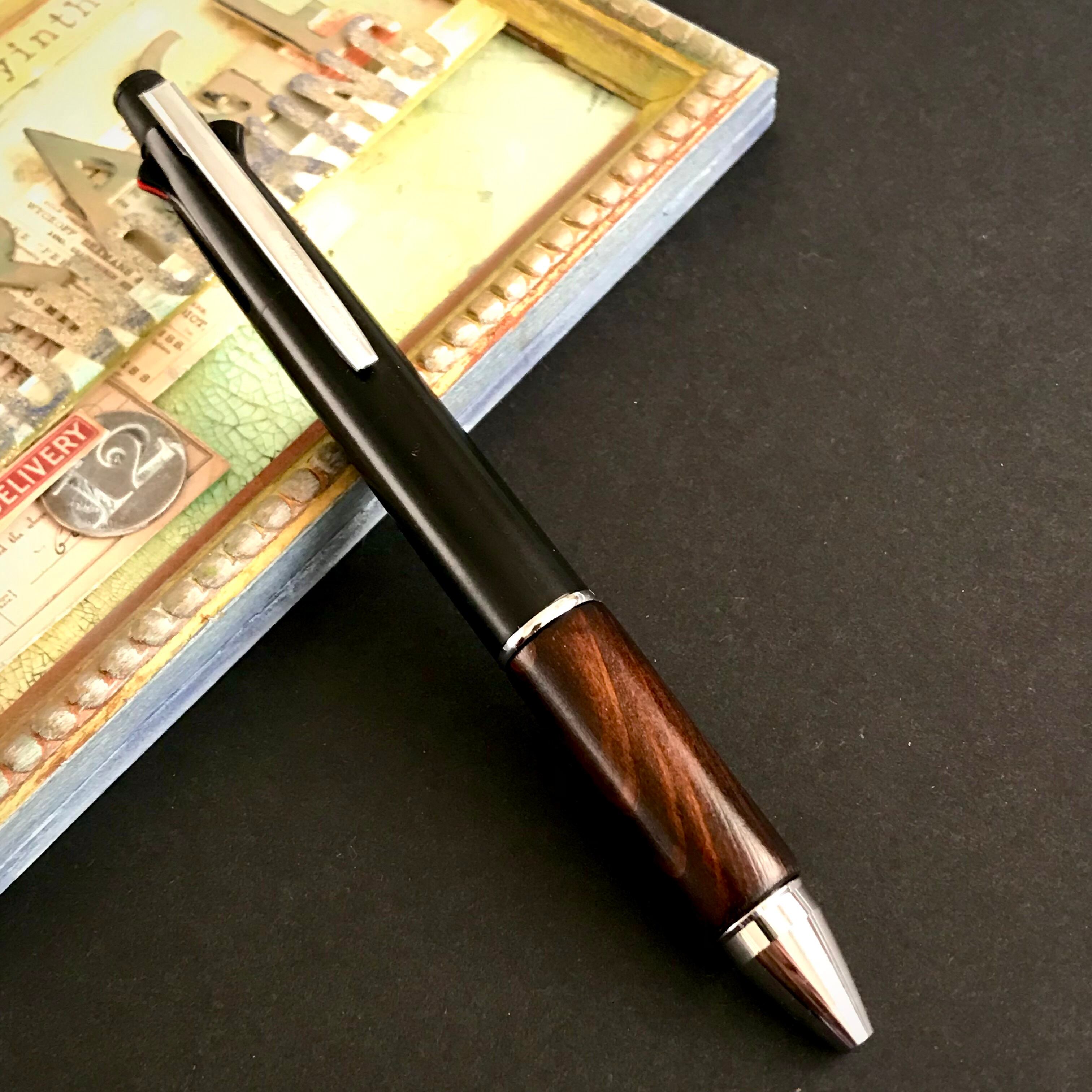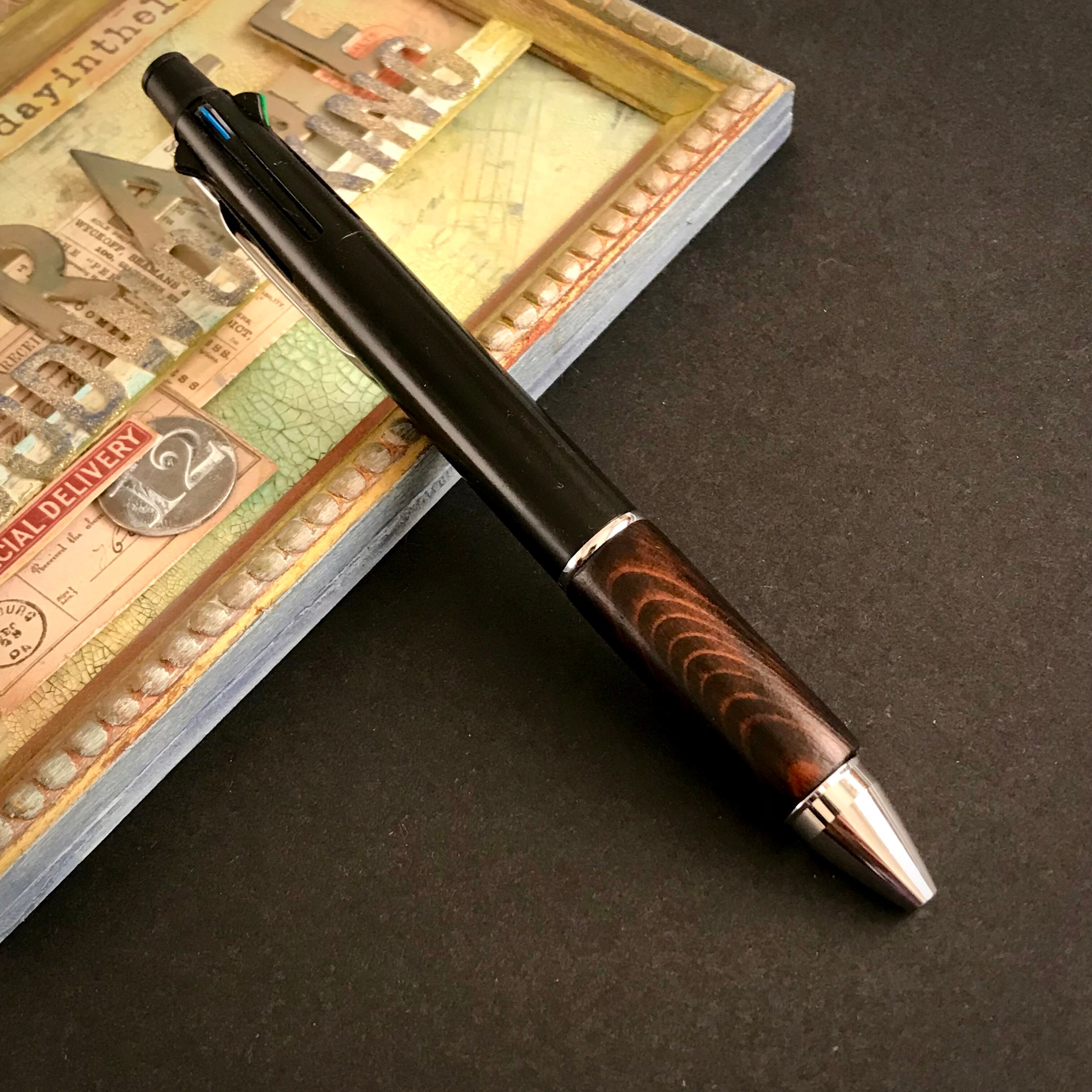 屋久杉 本黒漆 銘木 木軸グリップ ジェットストリーム4&1 カスタムグリップ 亜麻仁油+シェラック